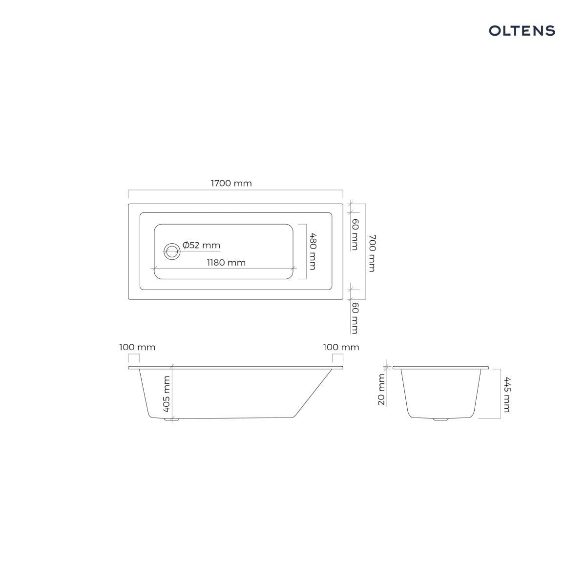 Oltens Langfoss wanna prostokątna 170x70 akrylowa czarny mat 10004300