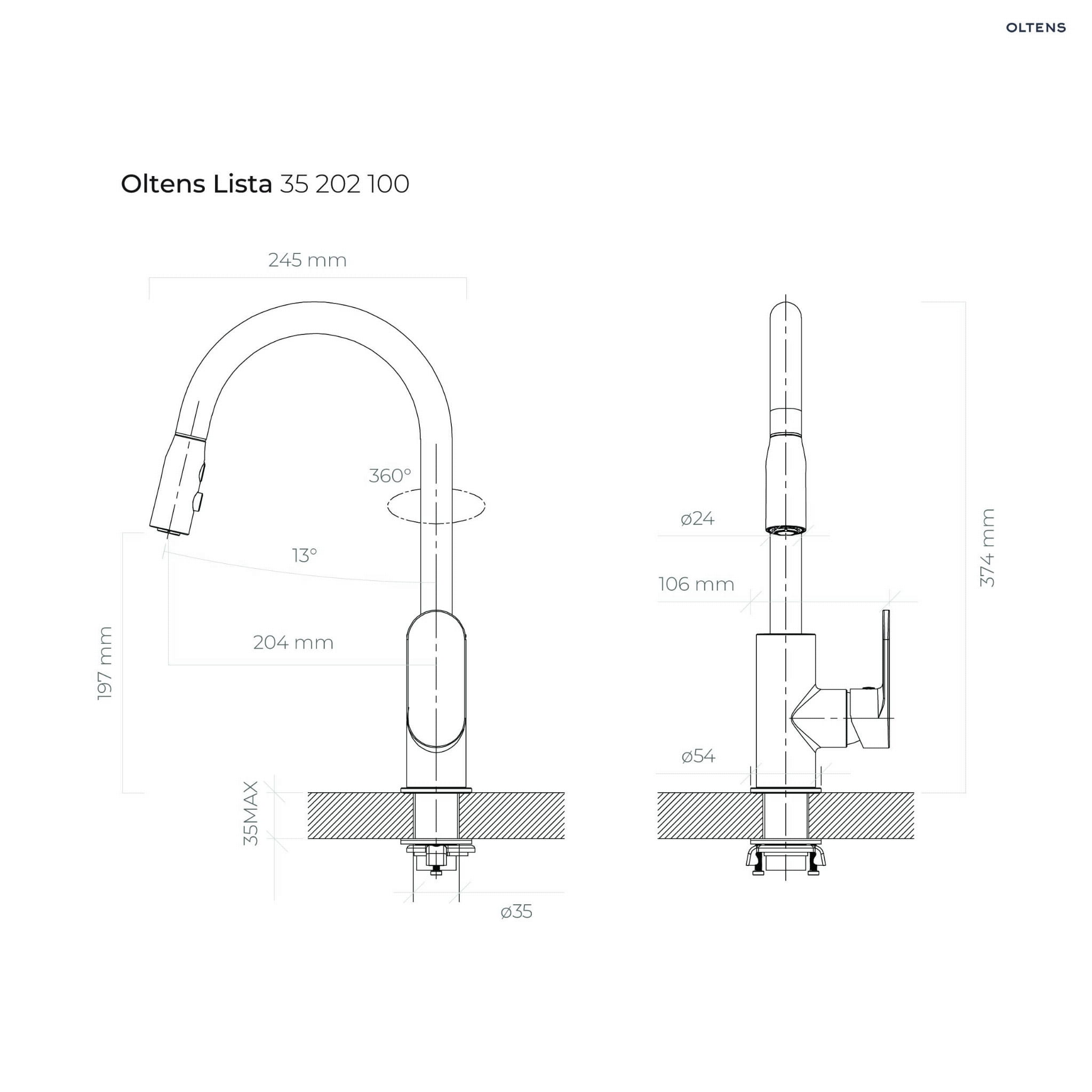 Oltens Lista bateria kuchenna stojąca z wyciąganą wylewką chrom 35202100