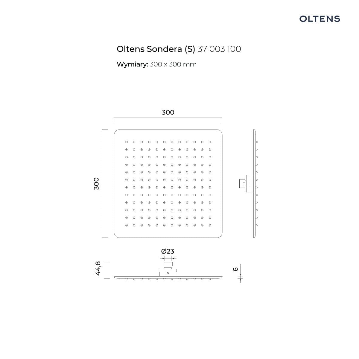 Oltens Sondera (S) deszczownica 30x30 cm kwadratowa chrom 37003100