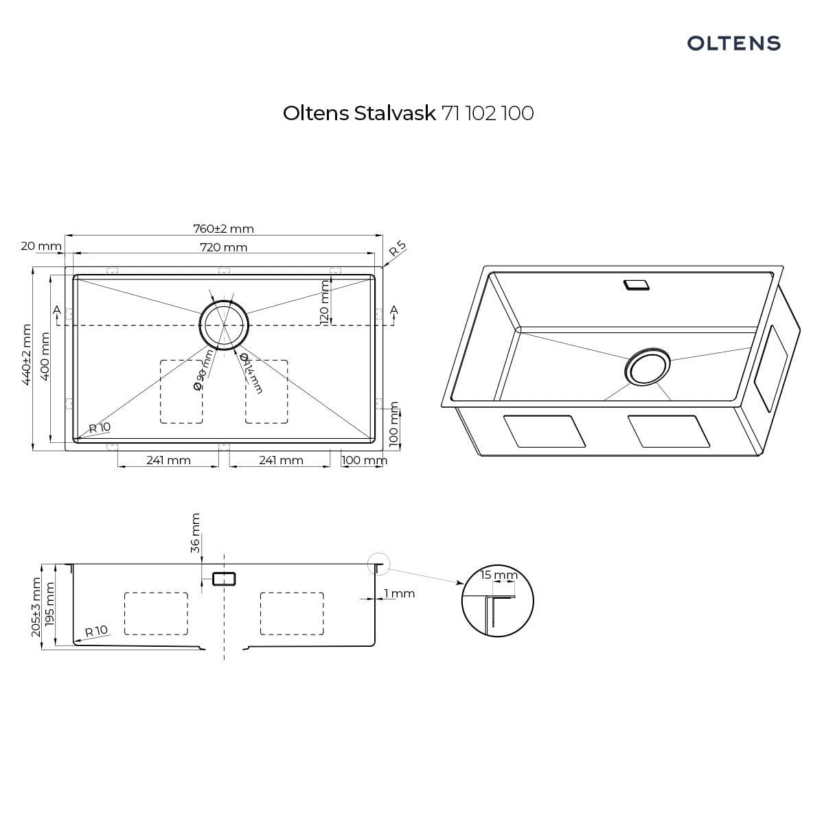 Oltens Stalvask zlewozmywak stalowy 1-komorowy 76x44 cm stal polerowana 71102100