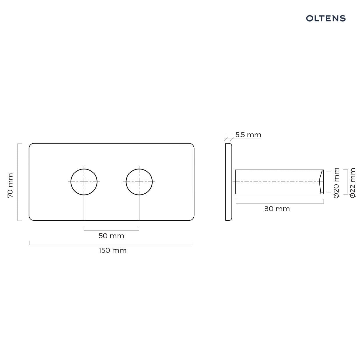 Rozeta podwójna z rurkami osłonowymi to element umożliwiający estetyczne maskowanie otworów oraz rur instalacji c.o. wychodzących ze ściany. Rozeta przeznaczona jest do zaworów Varmare Ventil o rozstawie podłączenia 50 mm i rur o średnicy 22 mm. Przystosowana do montażu wszystkich grzejników marki Oltens