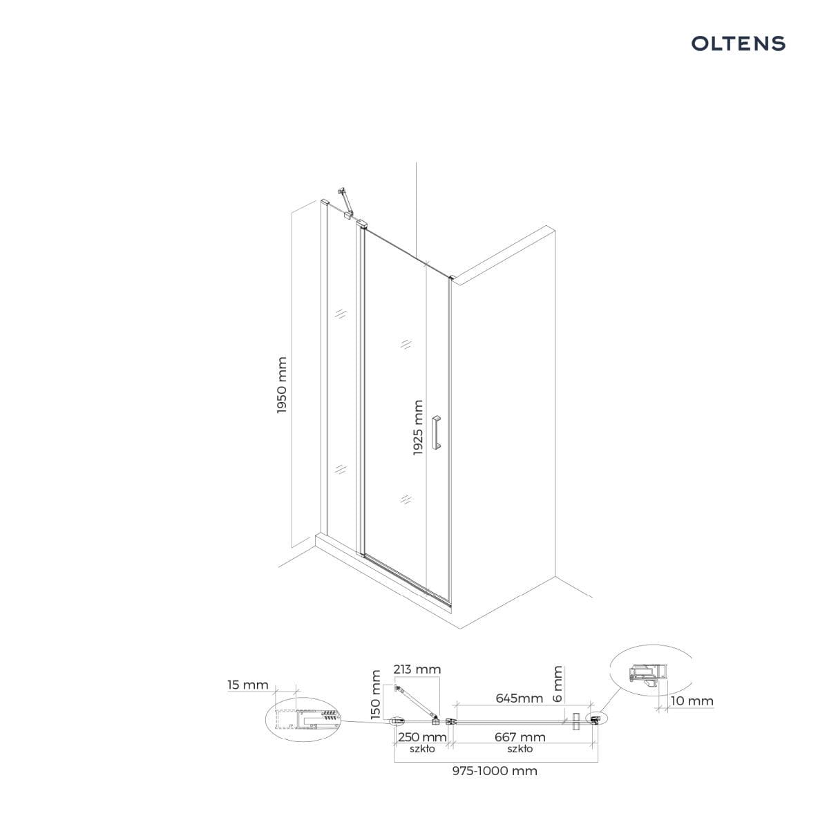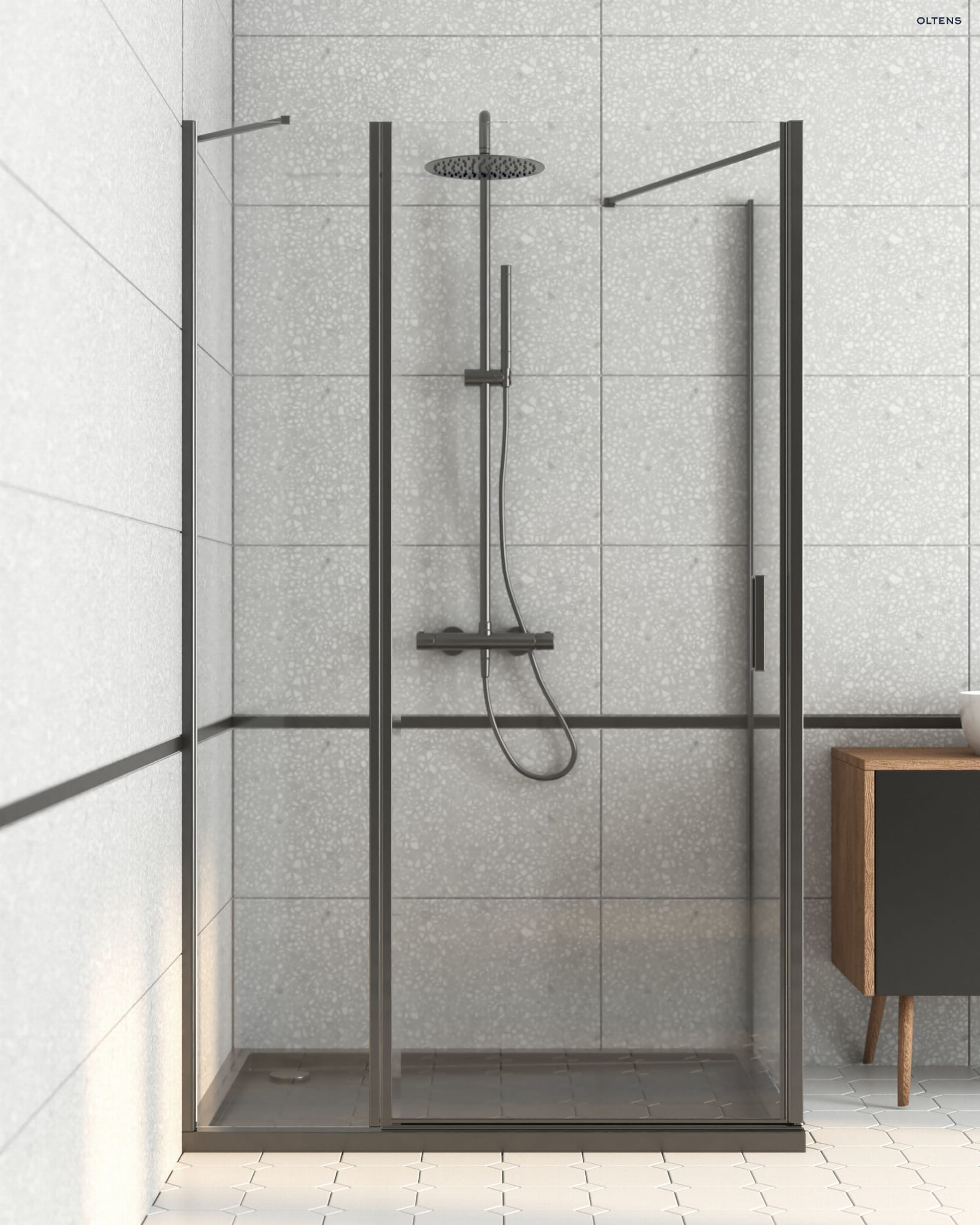 Oltens Verdal drzwi prysznicowe 100 cm wnękowe czarny mat/szkło przezroczyste 21205300