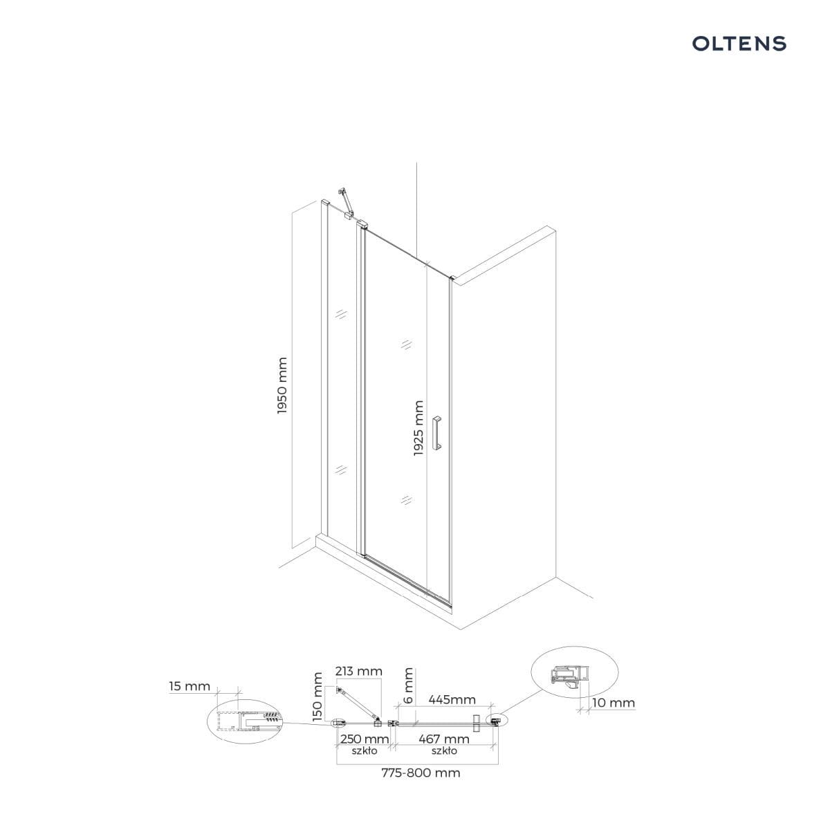 Oltens Verdal drzwi prysznicowe 80 cm wnękowe czarny mat/szkło przezroczyste 21203300