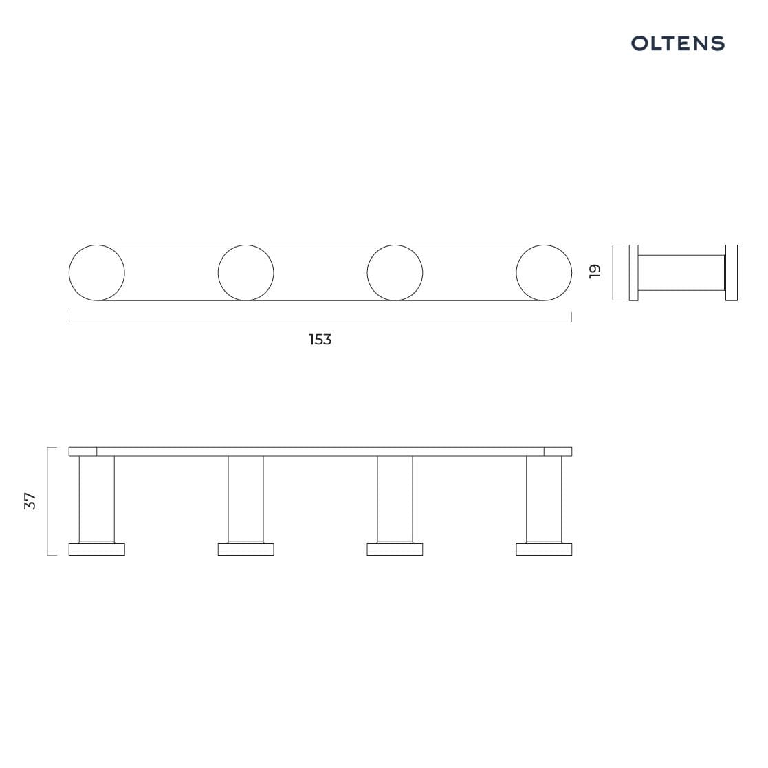 Wieszaki, haczyki i drążki na ręczniki marki Oltens zostały wykonane z mosiądzu pokrytego warstwą chromu a następnie pokryte złotą farbą, dzięki czemu produkty są bardzo trwałe, estetyczne i eleganckie. Mocowanie do ściany zostało ukryte. W komplecie z każdym produktem odporny na korozję zestaw do mocowania.