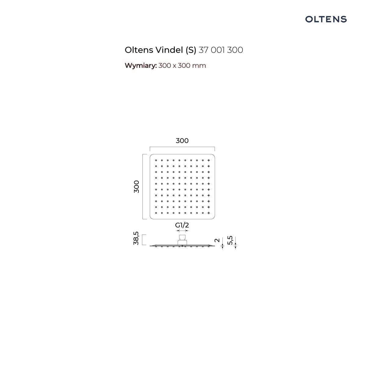 Oltens Vindel (S) deszczownica 30x30 cm kwadratowa czarny mat 37001300