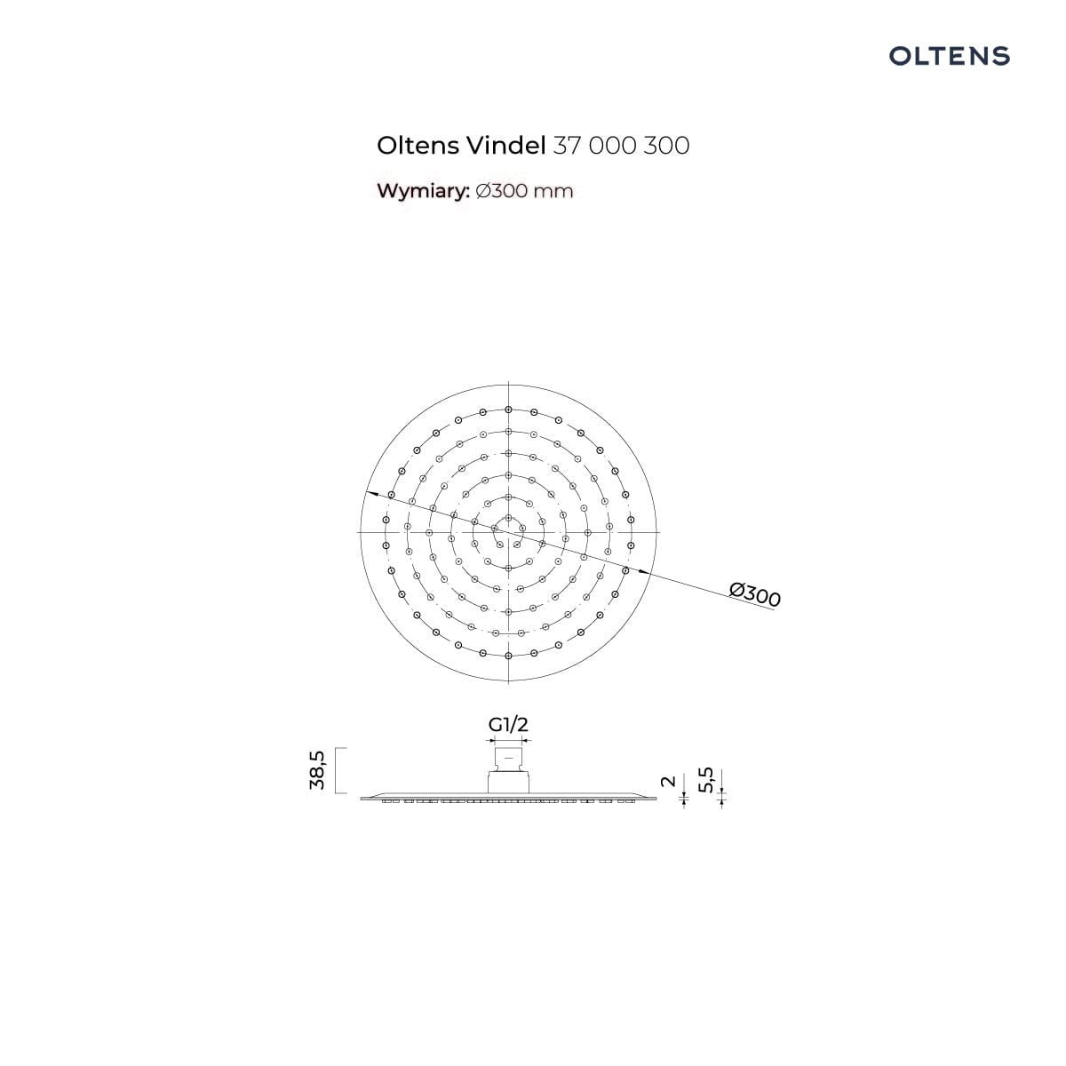 Producent OltensOltens Sondera Lagan deszczownica 30 cm okrągła z ramieniem ściennym chrom 36013100