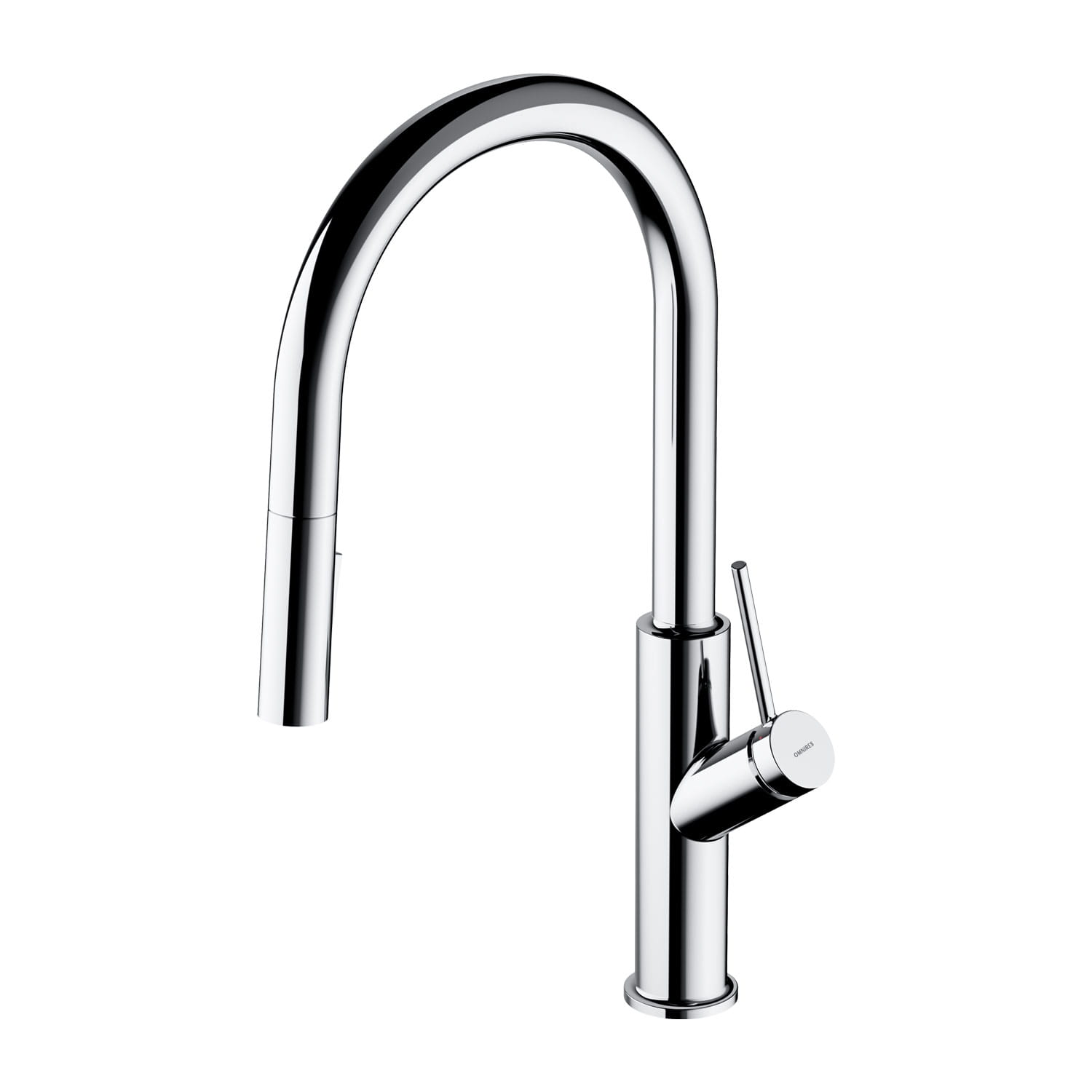 Bateria kuchenna OMNIRES BEND wyróżnia się piękną, minimalistyczną formą opartą na okręgach i łukach. Bateria o wysokości 44,9 cm wyposażona jest w obrotową, wyciąganą wylewkę z 2-funkcyjnym prysznicem, co zwiększa zasięg strumienia wody i wygodę użytkowania. Bateria została wykonana z wysokogatunkowego mosiądzu oraz wyposażona w najwyższej jakości głowicę ceramiczną. Innowacyjne rozwiązania technologiczne zapewniają najwyższy komfort użytkowania oraz pozwalają zredukować zużycie wody o połowę.