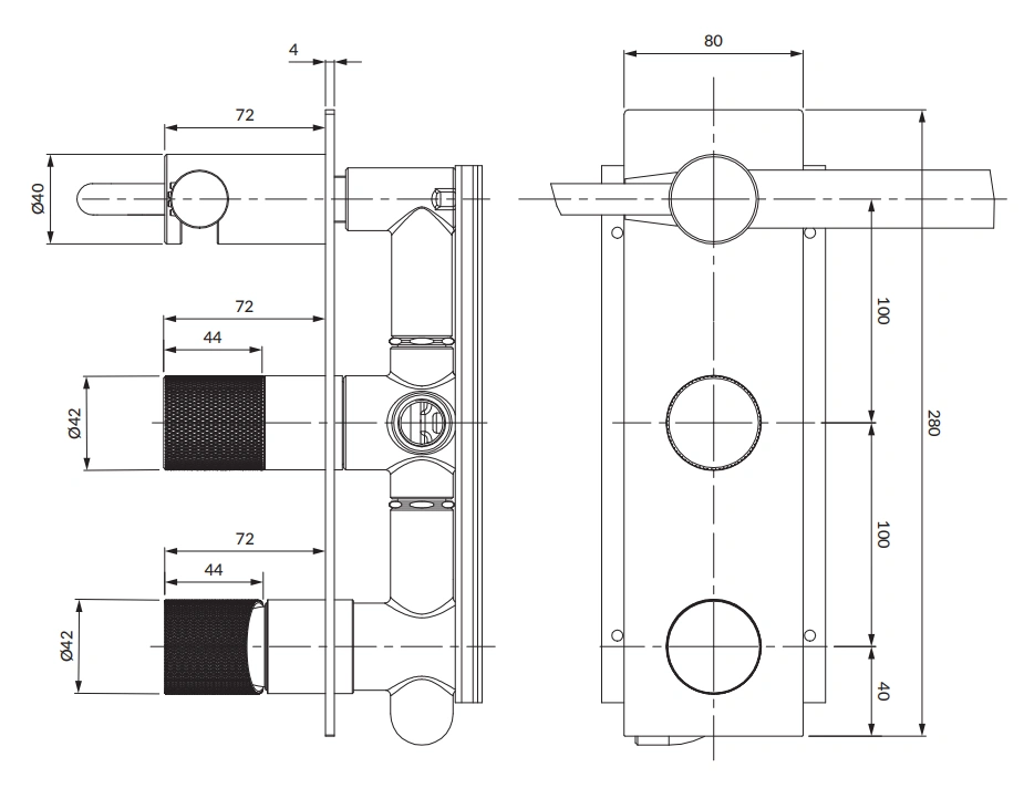 CONTOUR | bateria prysznicowo-wannowa podtynkowa z rączką prysznicową