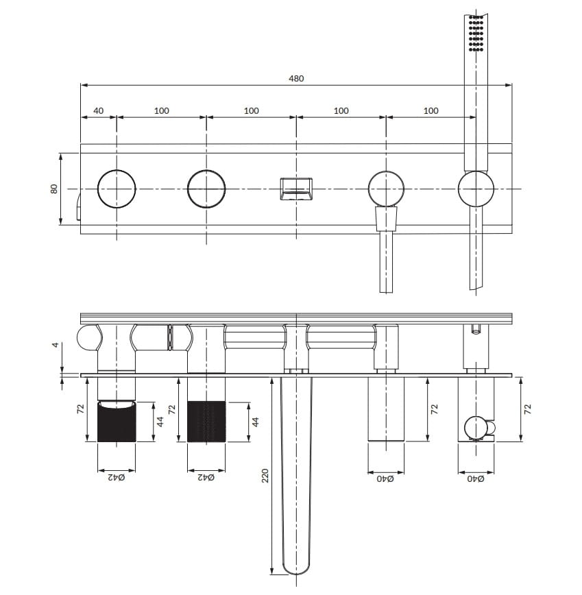 CONTOUR | bateria wannowa 5-otworowa podtynkowa