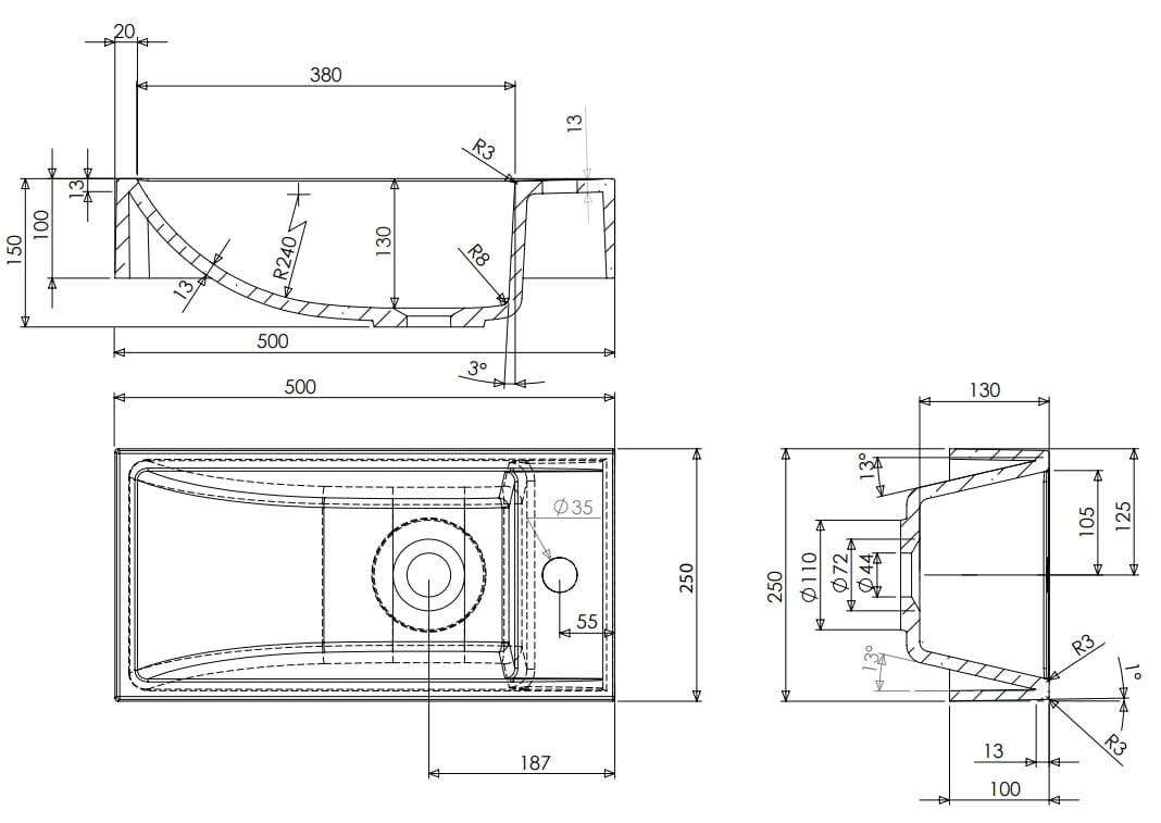 CORFU M+ | umywalka nablatowa/wisząca M+, 50 x 25 cm
