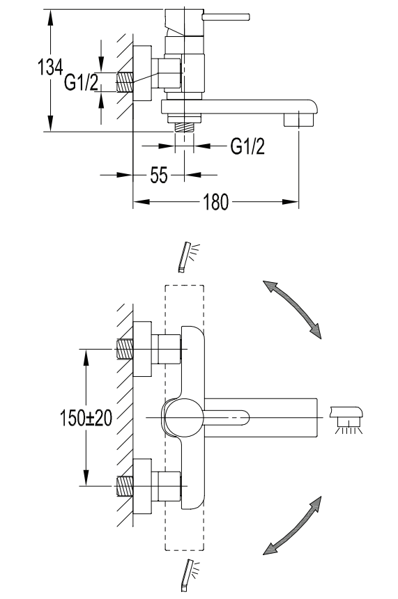 - rączka prysznicowa 1-funkcyjna