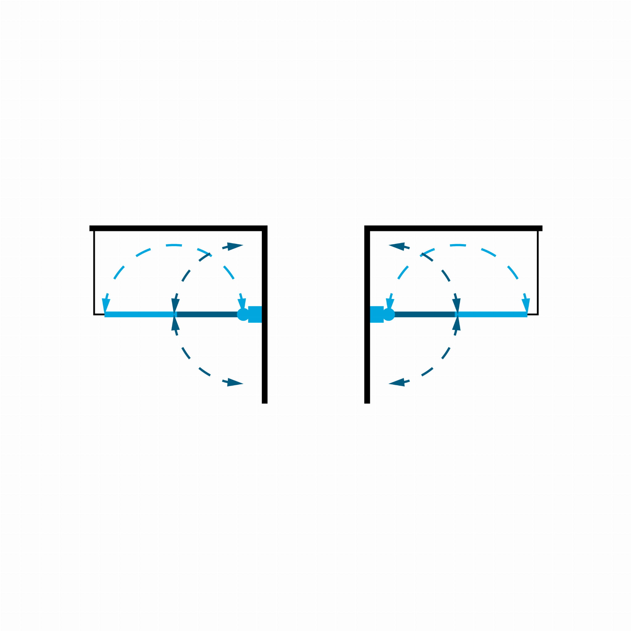 Dzięki systemowi DUAL MOUNT parawan może być zainstalowany z prawej lub z lewej strony.