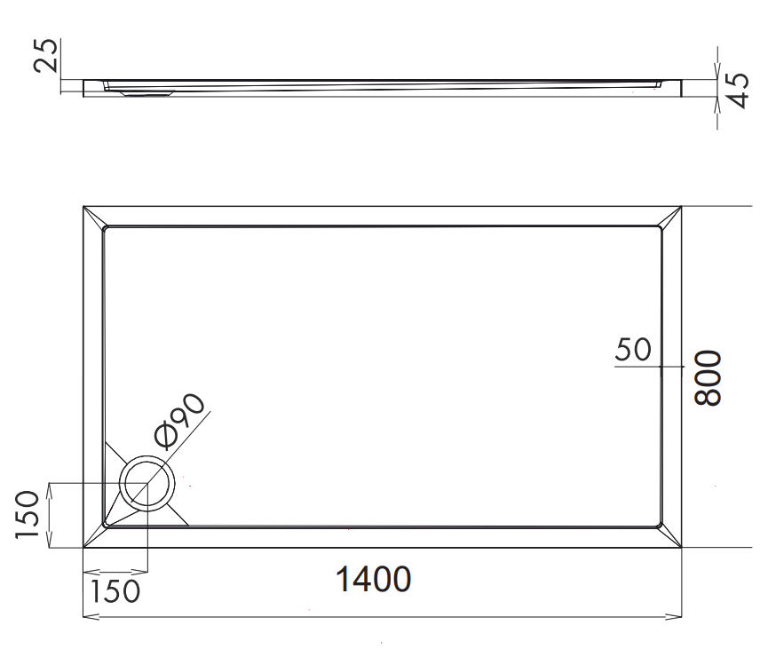Akrylowy brodzik prysznicowy prostokątny, 80 x 140 cm
