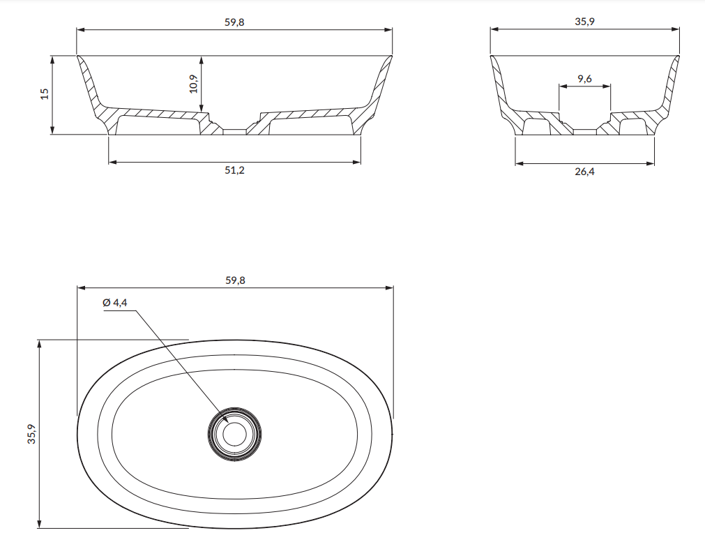 NEO M+ | umywalka nablatowa, 60 x 36 cm