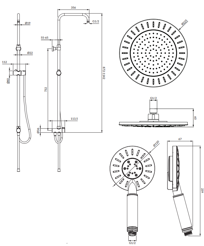 - regulowana wysokość, minimalna/maksymalna wysokość systemu: 87,2cm/114,2 cm