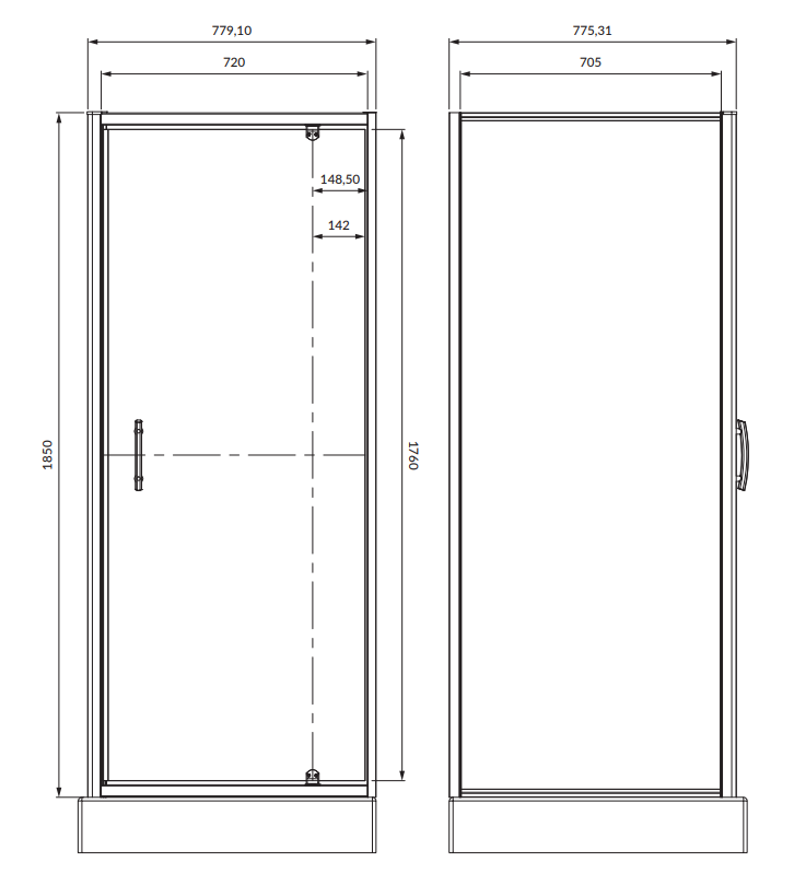 - ścianka z drzwiami: 80 cm
