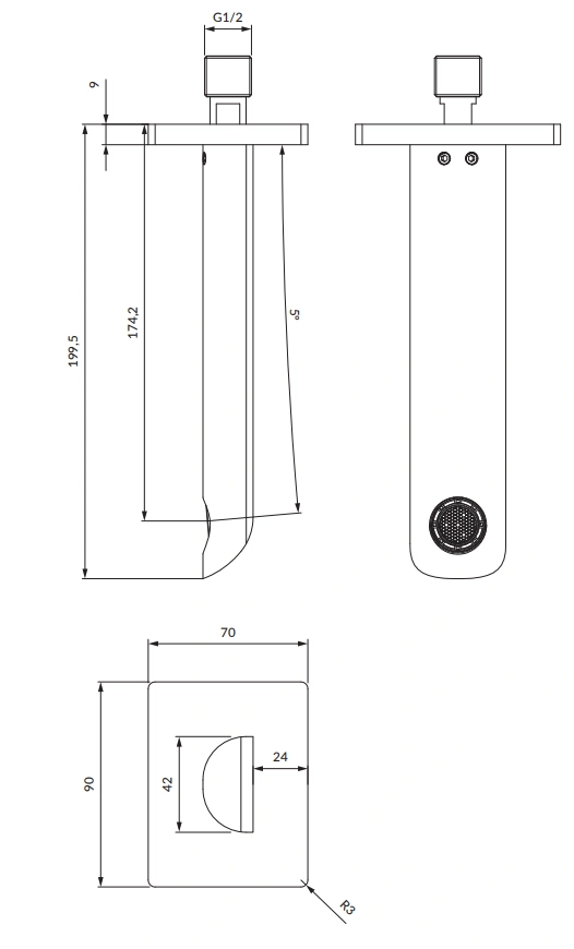 - zasięg wylewki: 19,9 cm, rozmiar rozety: 9x7 cm