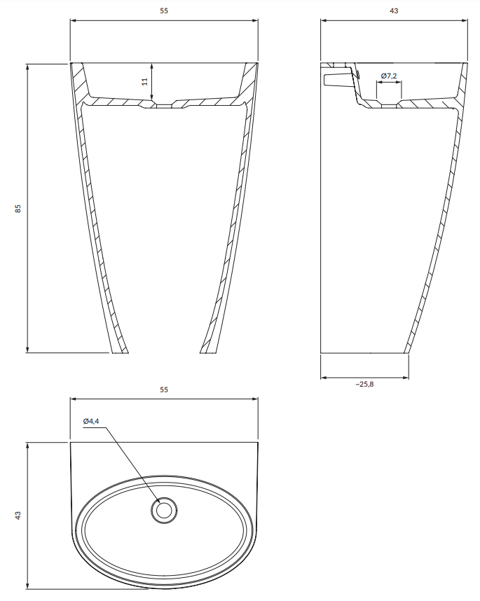 Umywalka wolnostojąca z kolekcji OMNIRES SIENA zachwyca monumentalną sylwetką. Ścięty tył idealnie przylega do ściany, dzięki czemu cała bryła zajmuje mniej przestrzeni. Umywalka stanie się centralnym punktem w łazience i nada wnętrzu wyrazisty charakter. Umywalka została wykonana z materiału kompozytowego (M+), którego głównym składnikiem jest skała dolomitowa. Innowacyjna technologia produkcji gwarantuje perfekcyjne wykonanie każdego detalu, jednocześnie zapewniając wyjątkową trwałość i odporność. Naturalnie odbijająca światło, połyskująca powierzchnia umywalki została wykończona w klasycznym kolorze bieli.