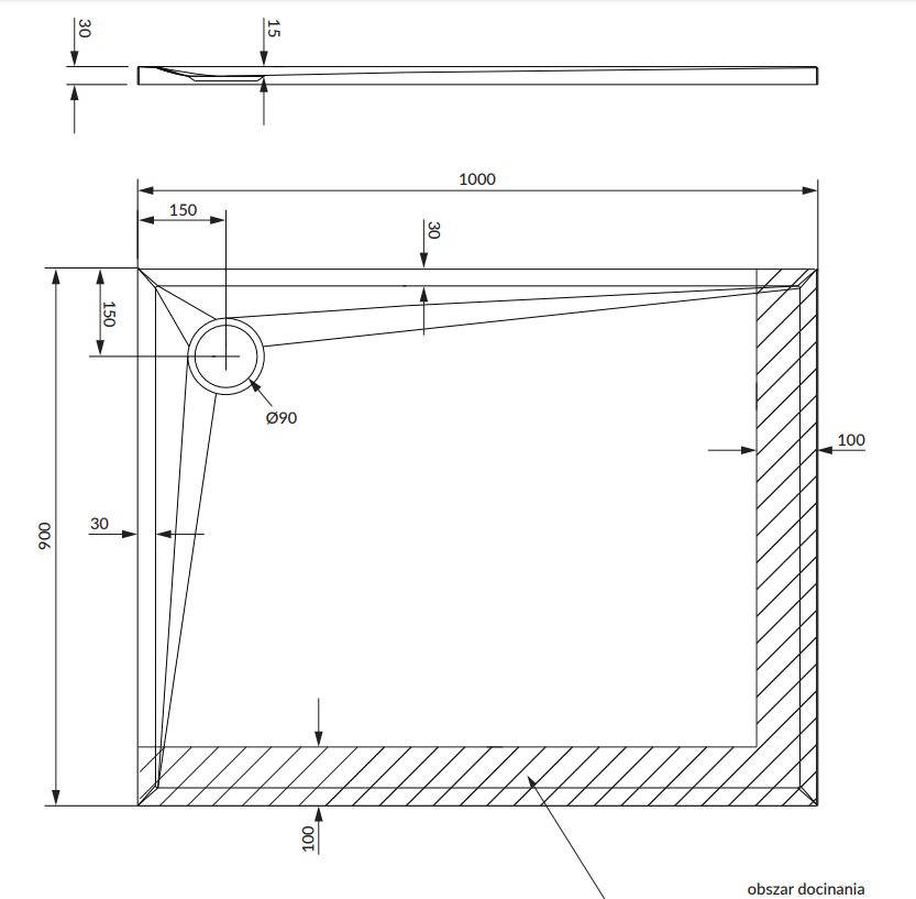 - odpływ: ø9 cm