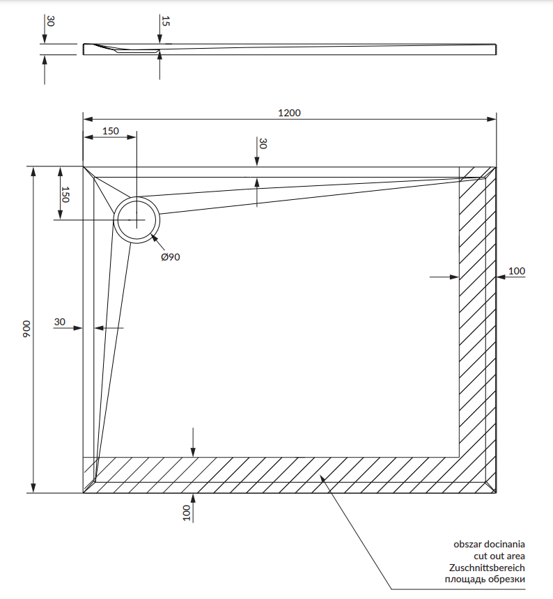 Brodzik został wykonany z wielowarstwowego materiału kompozytowego, który zapewnia niezwykłą trwałość i wytrzymałość. Matowa powierzchnia brodzika o strukturze naturalnego kamienia pokryta jest dodatkowo powłoką antybakteryjną CleanShield, która poprawia właściwości higieniczne, jednocześnie ułatwiając czyszczenie. Podbudowa stabilizująca usztywnia brodzik, zapewnia izolację termiczną i akustyczną. Warstwa uszczelniająca chroni przed wilgocią i powstawaniem pleśni. Brodzik można montować klasycznie na posadzce lub na równi z podłogą. Może być on również przycięty w celu idealnego dopasowania się kształtem do przestrzeni łazienki.