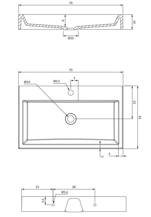 THASOS M+ | umywalka nablatowa/wisząca M+, 70 x 42 cm