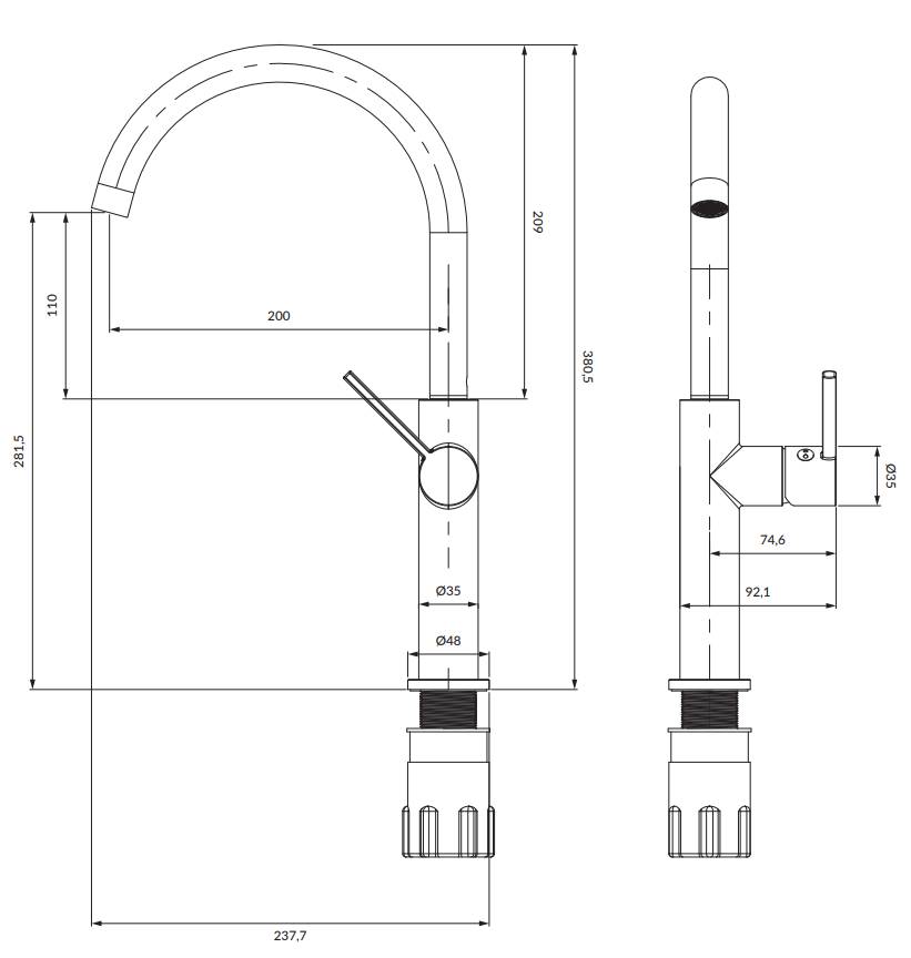 - zasięg wylewki: 20 cm