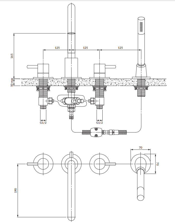Bateria wannowa 4-otworowa