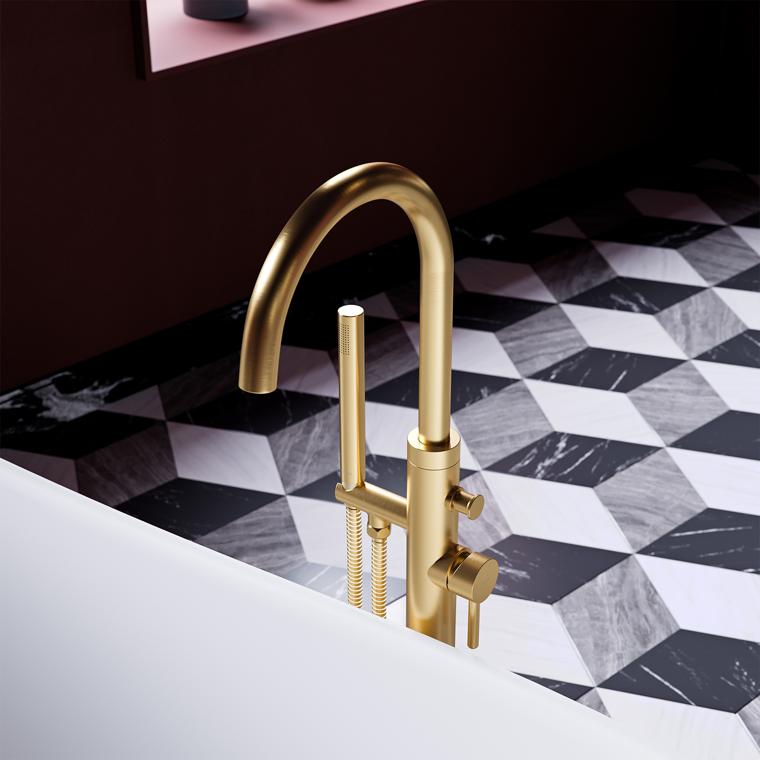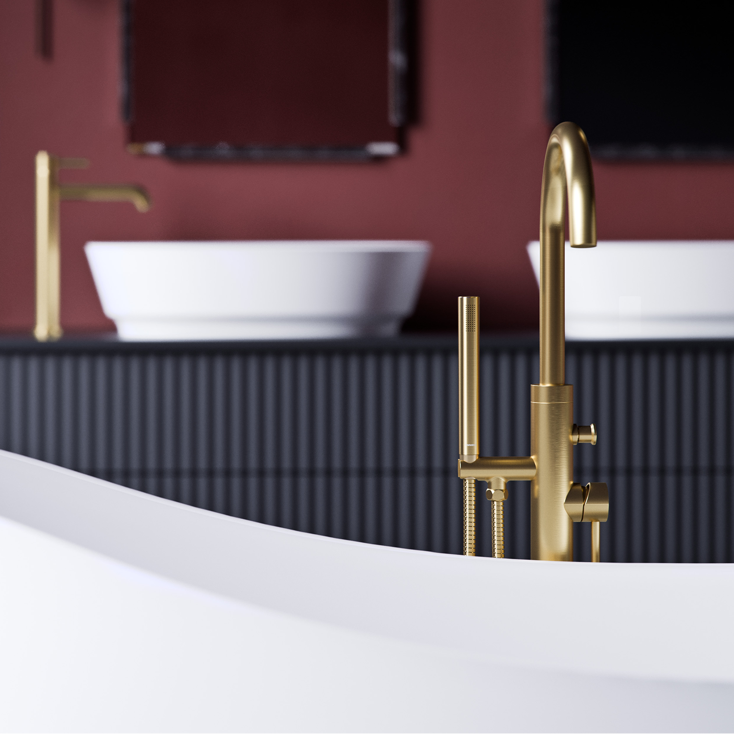Omnires Y bateria wannowa wolnostojąca złoto szczotkowane. Y1233GLB
