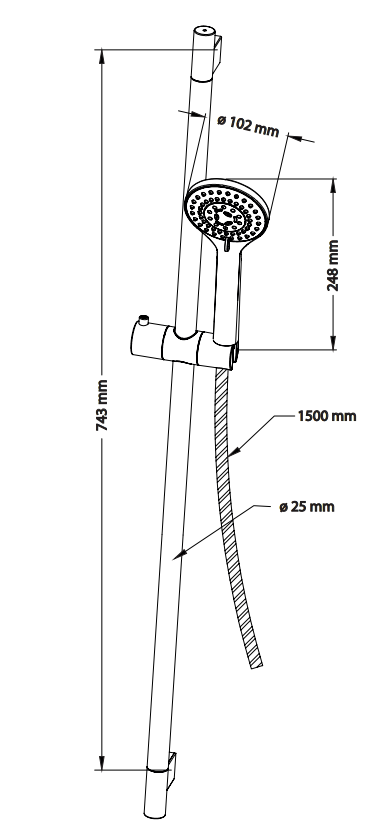 - drążek prysznicowy stalowy, długość: 82,5 cm, rozstaw mocowań: 74,3 cm