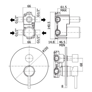 Bateria natryskowa podtynkowa (2 wyjścia) wraz z: