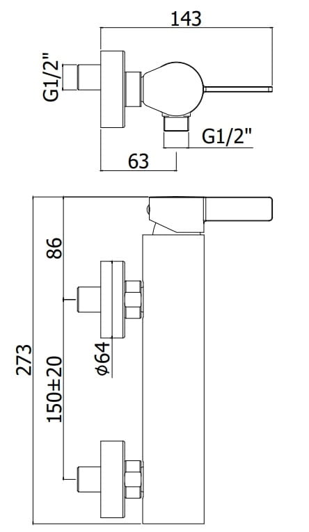Producent Paffoni RubinetteriePaffoni Rubinetterie Rock Bateria natryskowa ścienna (korpus) RO168CR