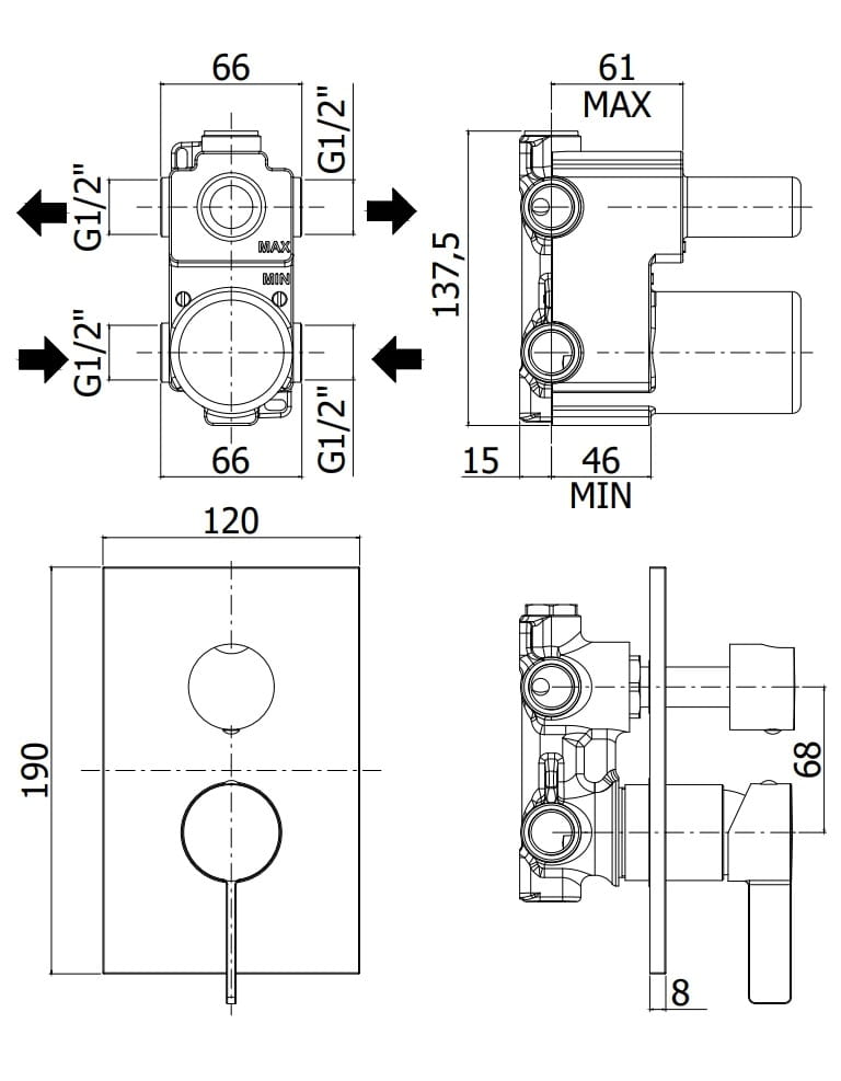 Producent Paffoni RubinetteriePaffoni Rubinetterie Rock Bateria natryskowa ścienna (korpus) RO168CR