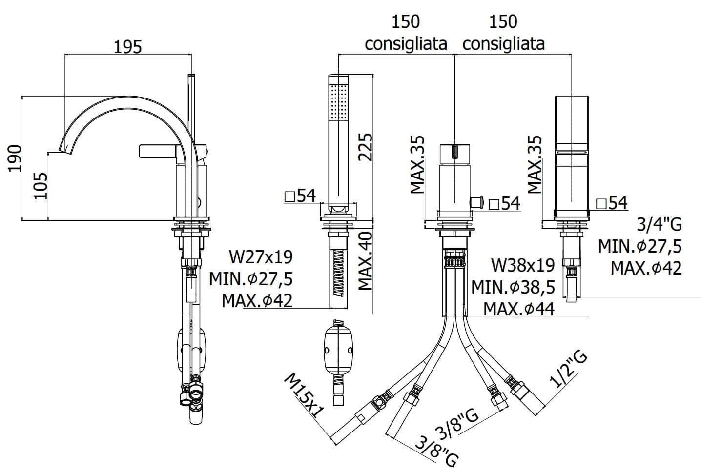 Producent Paffoni RubinetteriePaffoni Rubinetterie Rock Bateria umywalkowa podtynkowa 150mm RO104ST70