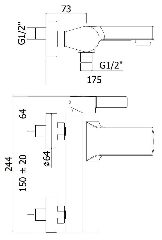 Paffoni Rubinetterie Rock Bateria wannowa ścienna RO026CR