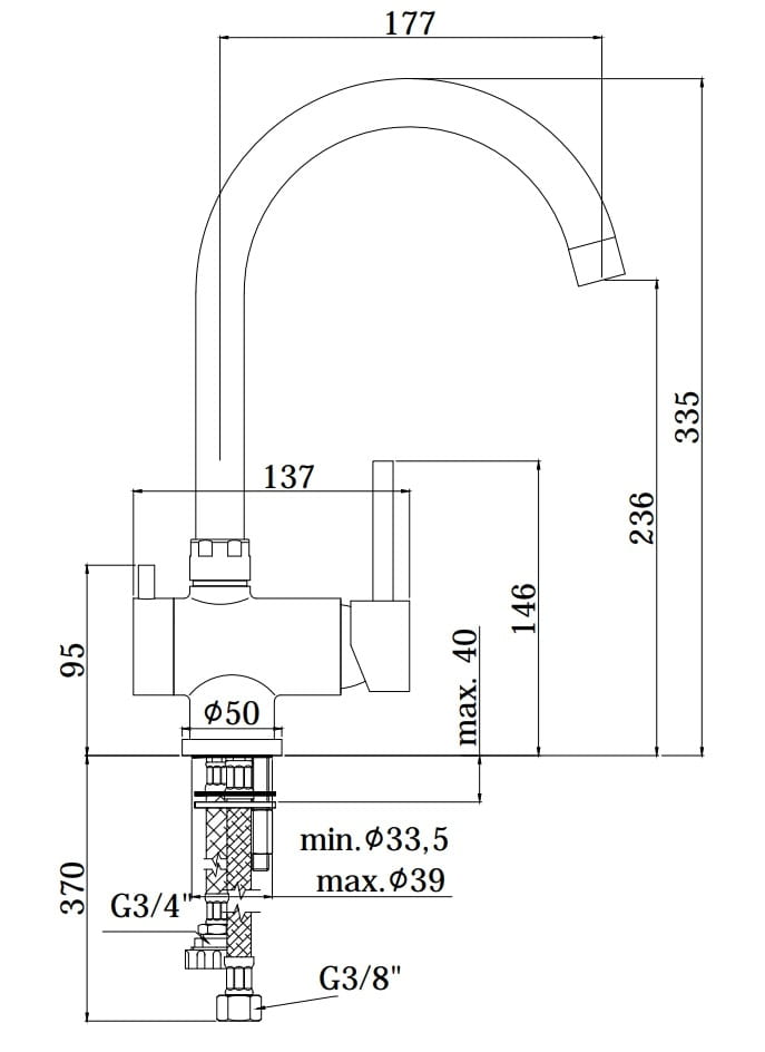 Jednouchwytowa bateria zlewozmywakowa z obrotową wylewką
