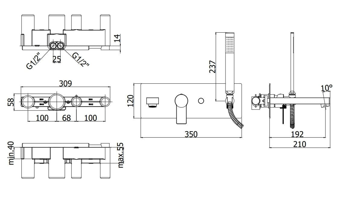 bateria wannowo-natryskowa (2 wyjścia) w komplecie z: