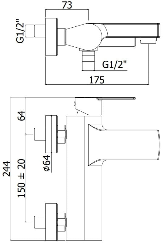 Bateria wannowo-natryskowa natynkowa bez zestawu natryskowego
