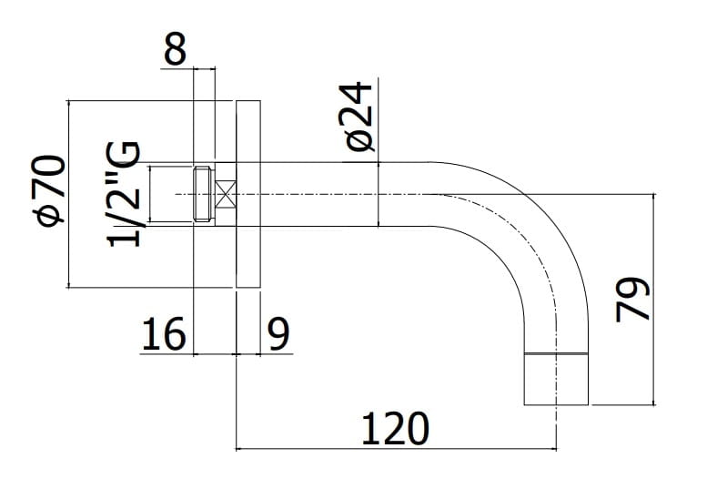 średnica wylewki Ø24 mm, długość 120 mm