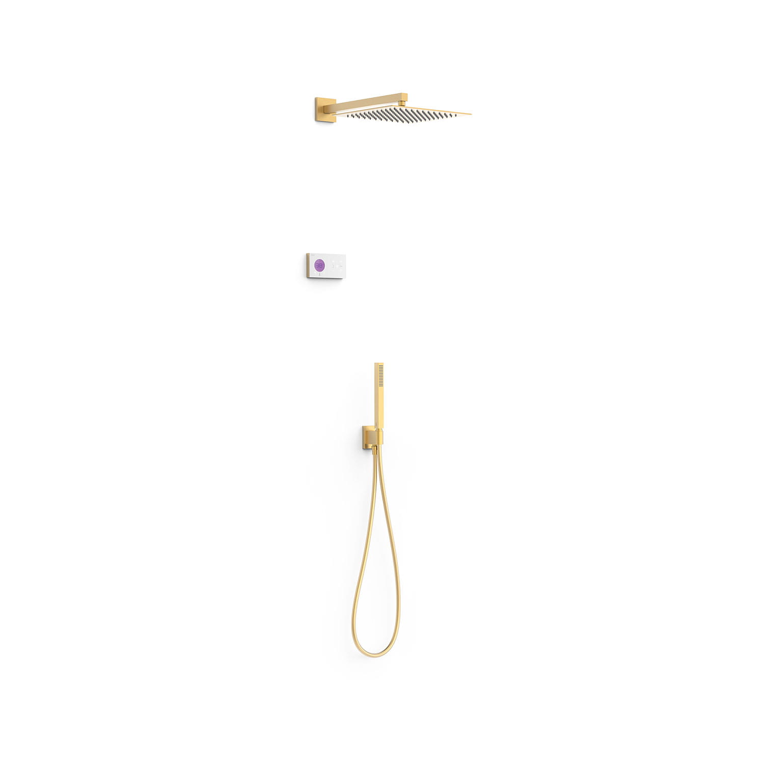Podtynkowy termostatyczny elektroniczny zestaw prysznicowy 2-drożny TRES SHOWER TECHNOLOGY Blue Edition 24-K Złoto Matowe. 09286563OM