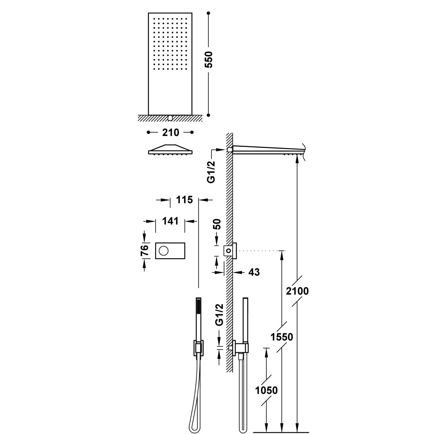 · Deszczownica naścienna ze stali nierdzewnej: 210x550 mm