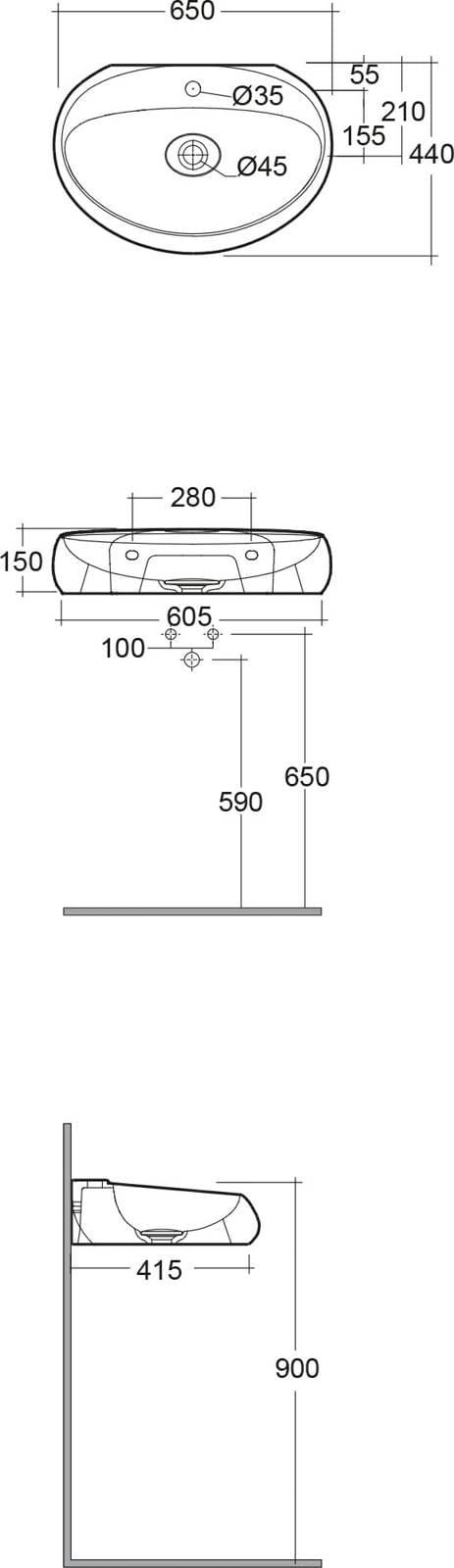 CLOUD Umywalka podwiesz. & nablat. owalna 65x44cm z otworem biały mat