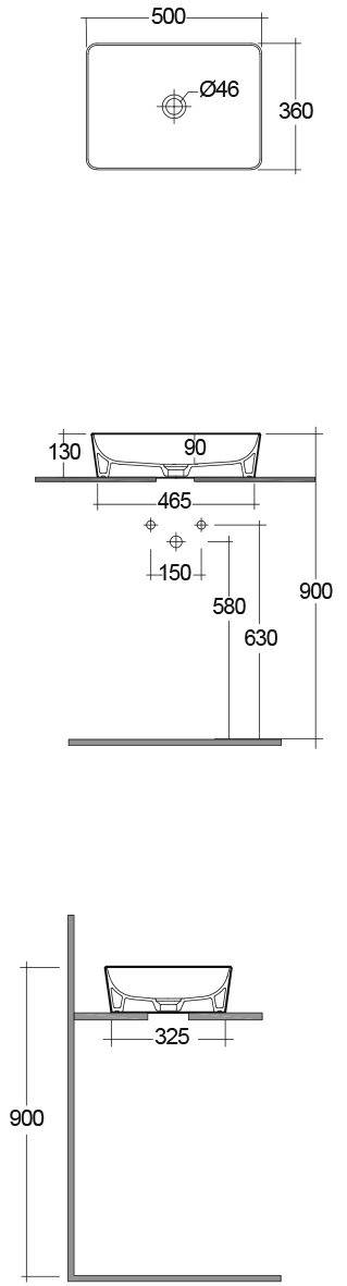 RAK Ceramics FEELING Umywalka slim nablatowa prostokąt 50 cm biały mat (500). FEECT5000500A