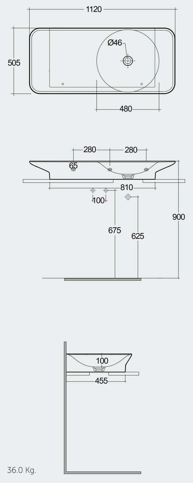 RAK Ceramics VALET Umywalka podwieszana & nablatowa 112x50,5 cm blat L biały mat. VALWB11300500A