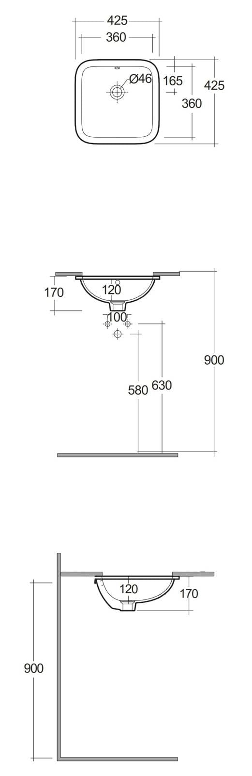 RAK Ceramics Variant Umywalka podblatowa kwadratowa 36x36 cm. VARUC43600AWHA