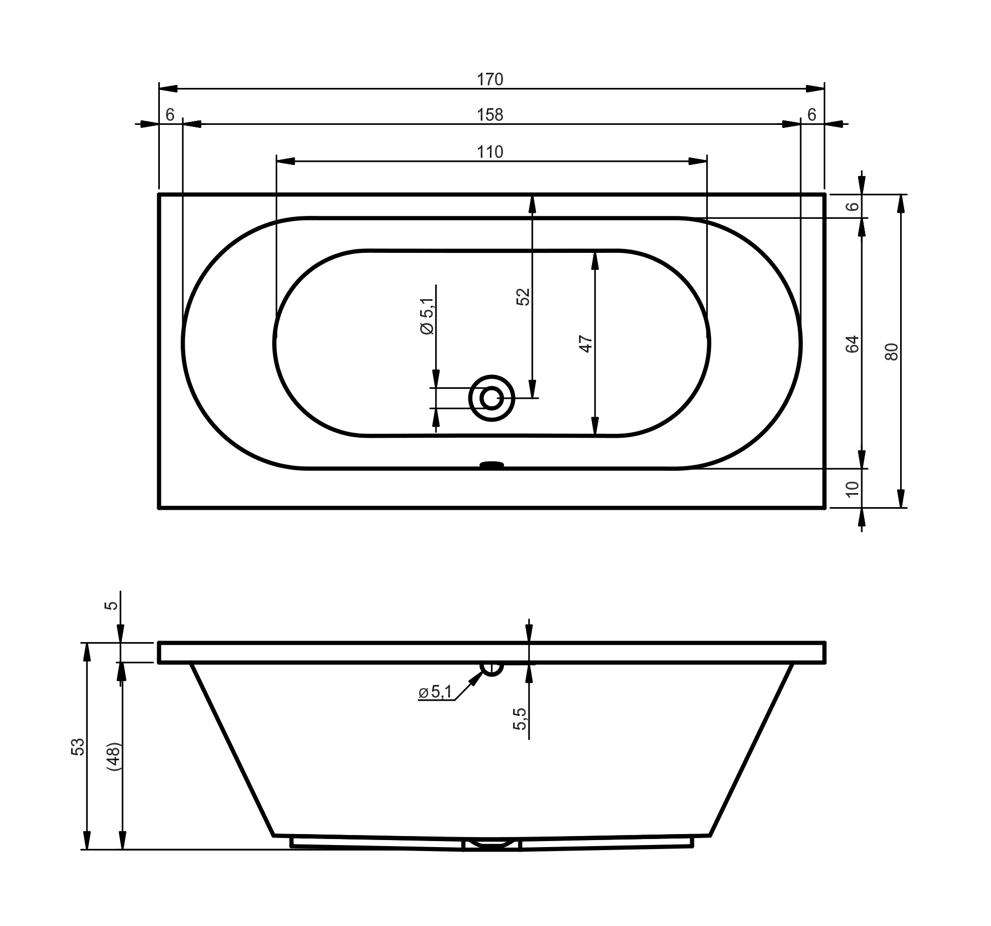 RIHO Carolina wanna akrylowa 170x80. B055001005