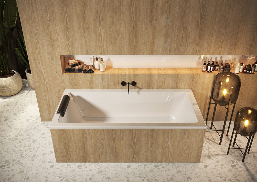 Prostokątna wanna do zabudowy.