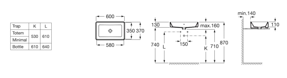 Producent RocaRoca OHTAKE umywalka FINECERAMIC nablatowa asymetryczny 54x37,5x18,5 cm Biały połysk. A327A13000