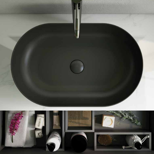 Rak Ceramics Feeling Umywalka nablatowa slim owalna 55 cm Czarny mat. FEECT5500504A