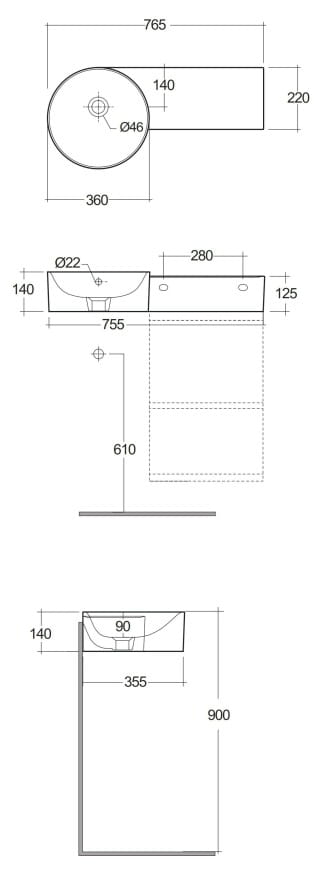 Rak Ceramics Petit umywalka wieszana okrągła z blatem 77X36 cm Prawa. PETWB27700AWHA