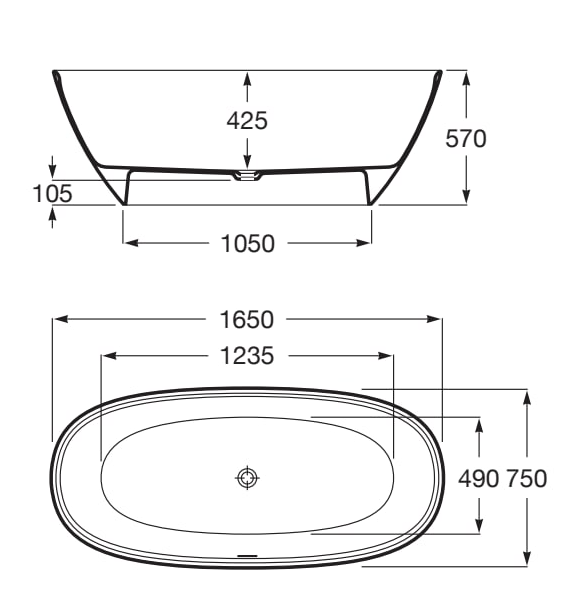 Roca ARIANE Owalna wanna kompozytowa wolnostojąca Stonex ® 165x75 cm. A248470000